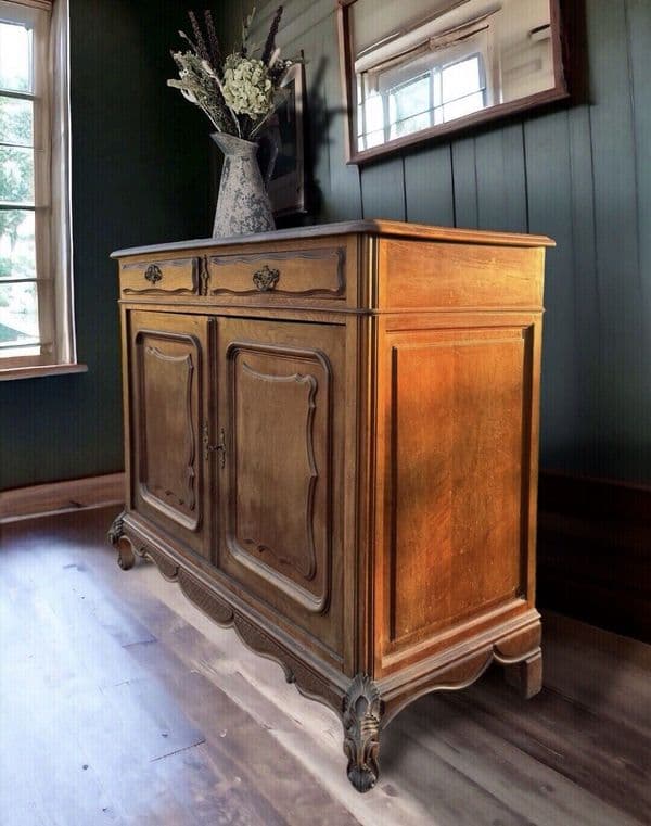 Antique Oak French Louis Style Carved Sideboard