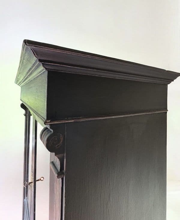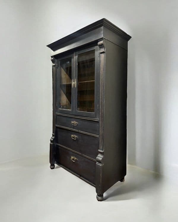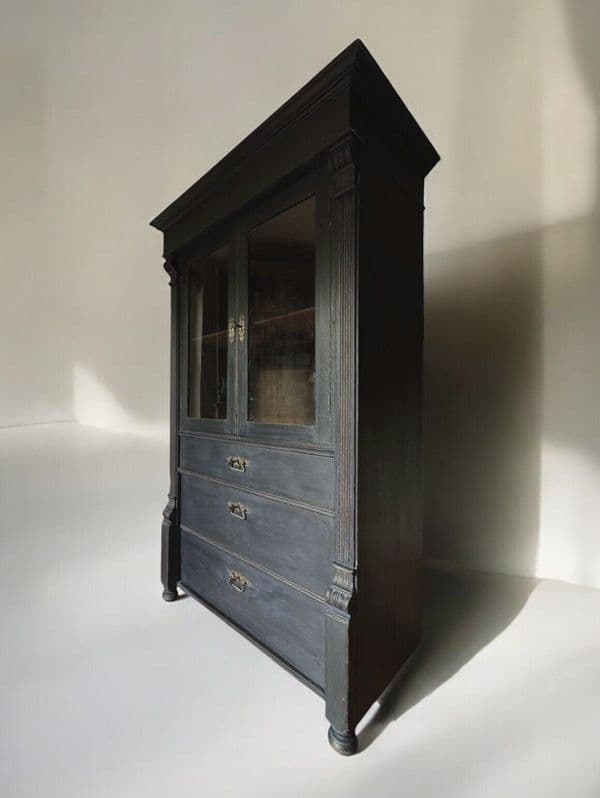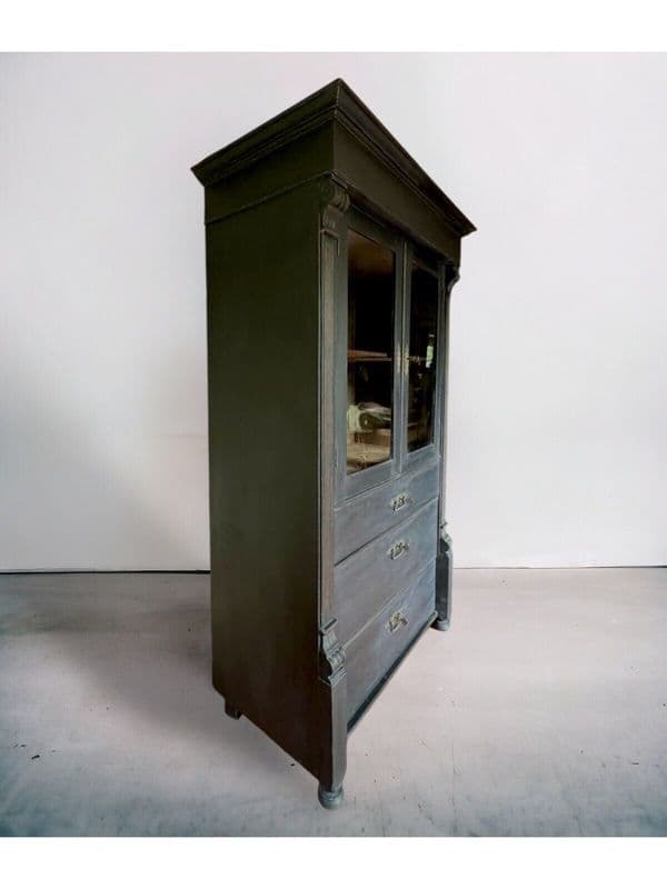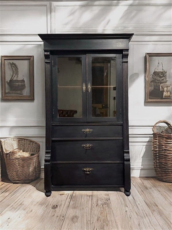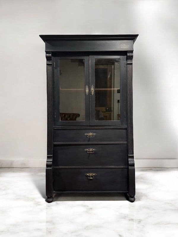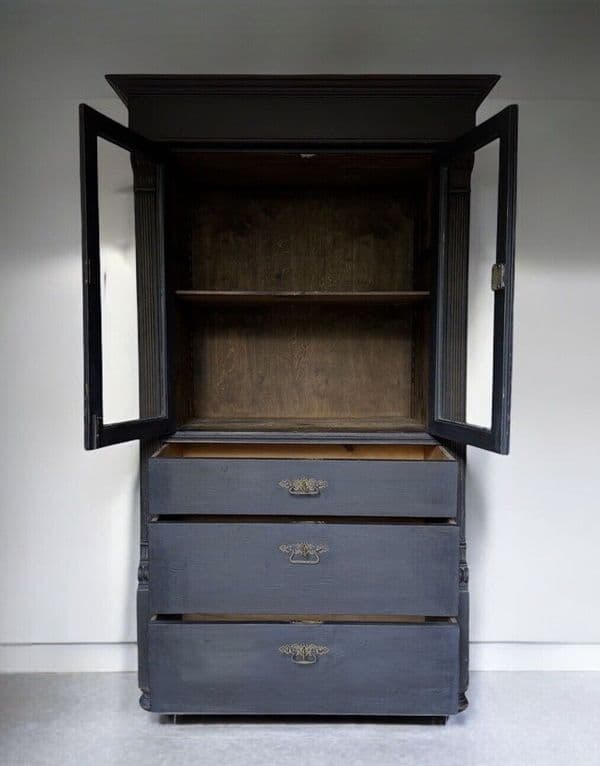 Antique German, Swedish Style Pine Glazed Display Cabinet Over Chest of Drawers