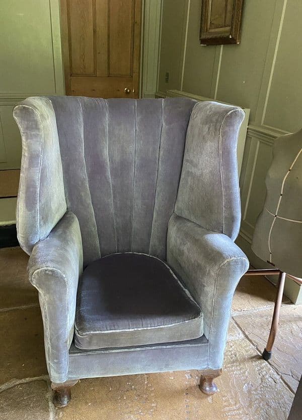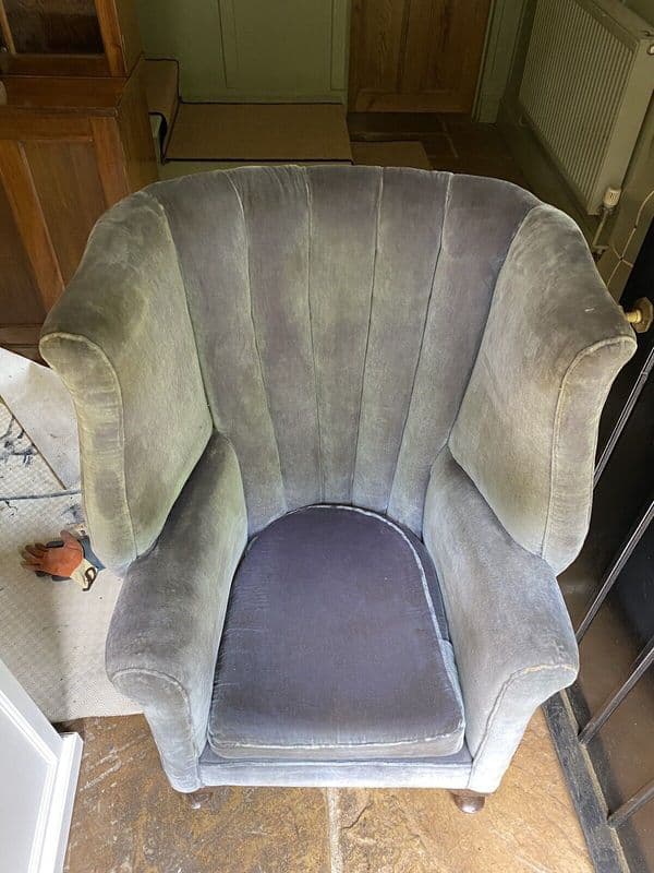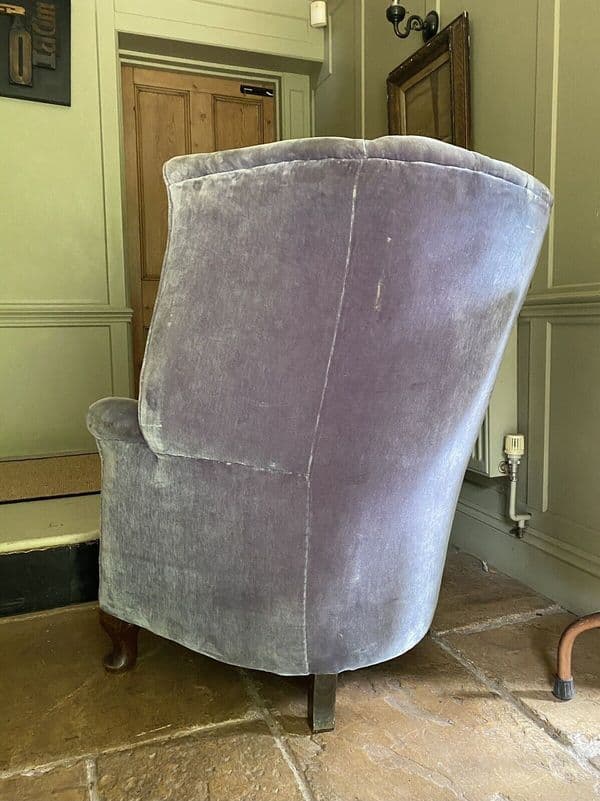 Antique Velvet High Barrel Back Chair Tub Armchair