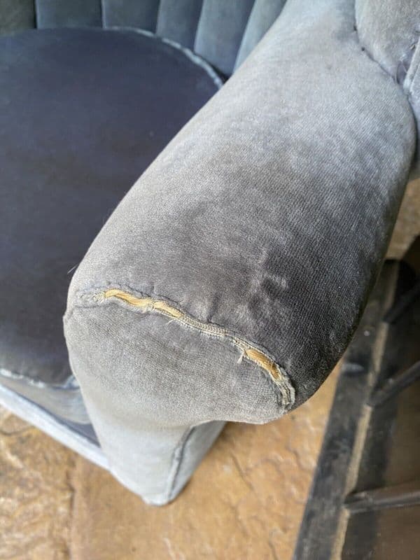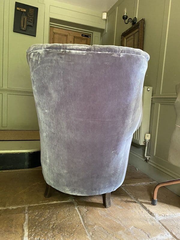 Antique Velvet Upholstered Barrel Back Tub Armchair.