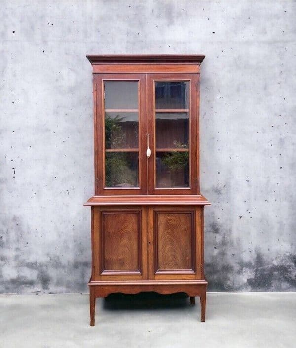 Compact Antique Early C20th Glazed Mahogany Display China Cabinet Bookcase